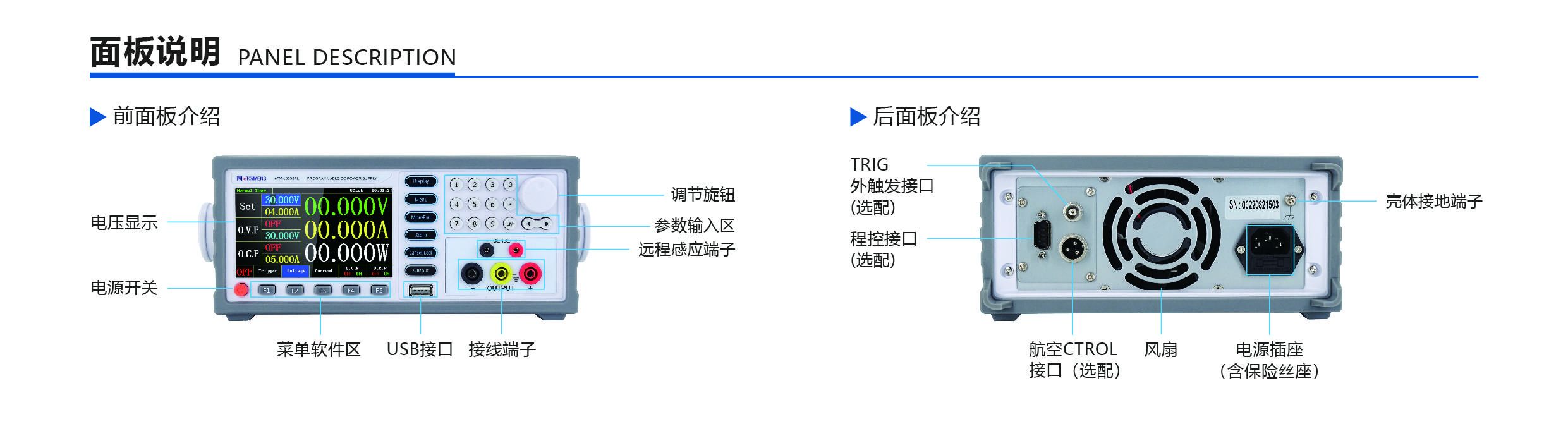【通讯功能】背面可选配RS232/USB/485编程接口,支持Modbus编程说明。